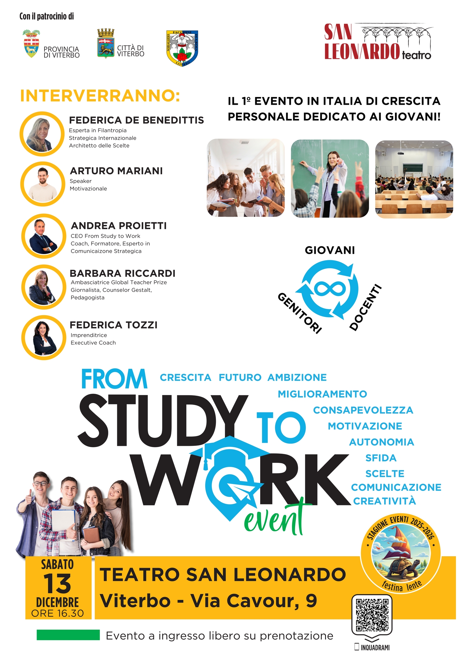 From Study To Work è un workshop innovativo, creato appositamente per aiutarti a entrare nel mondo del lavoro con le giuste competenze e la mentalità vincente.